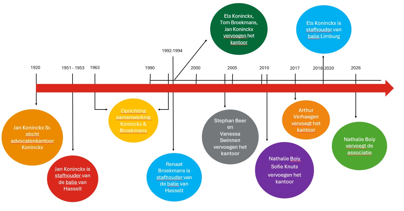 In 1963 startte een kwaliteitszekere samenwerking tussen Mr Johan Koninckx en Mr Renaat Broekmans. In de jaren ’90 kwam verdere uitbreiding tot stand door de toetreding tot de associatie van Mr Els Koninckx, Mr Jan Koninckx Jr., Mr Tom Broekmans, Mr Stephan Beer, Mr Vanessa Swinnen en in 2026 ook Mr Nathalie Boiy.